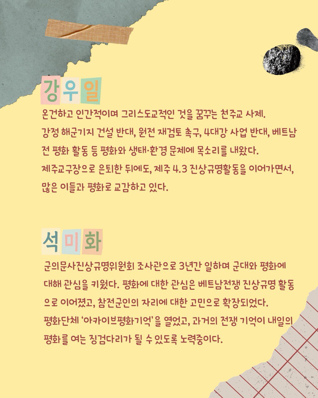 평화가 필요한 곳에 찾아가 목소리 내는 것을 아끼지 않은 강우일 주교와 함께 《전쟁에 동원된 남자들》을 읽고, 이야기 나눕니다.